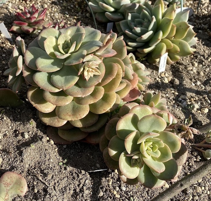 でも寒くなってきた今の時期、乳白色で薄いピンクに染まったかわいいロゼット。単品複数で育ててもかわいいし、寄せ植えではメインにも脇役にもなる優れもの。ぜひものにしたいものです。